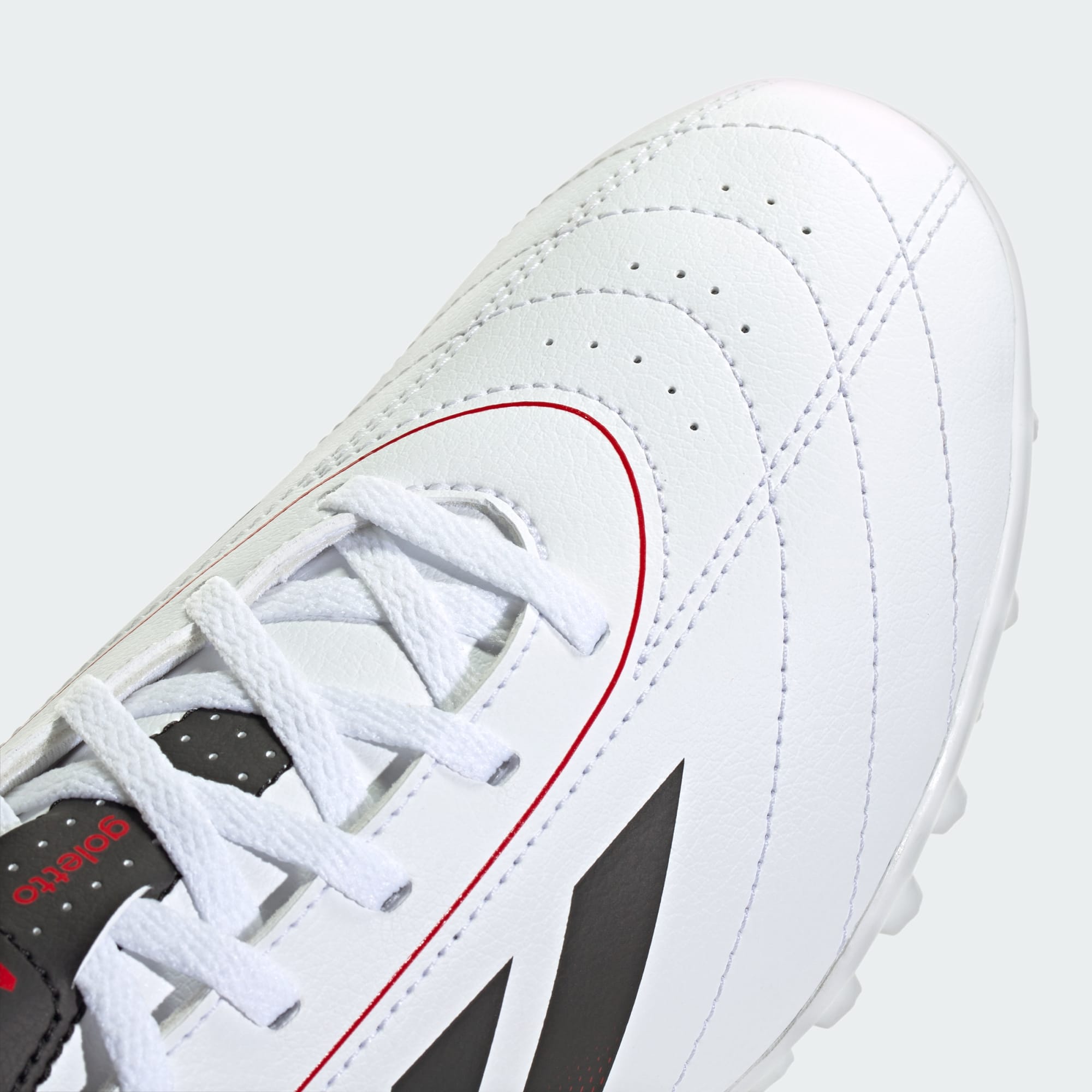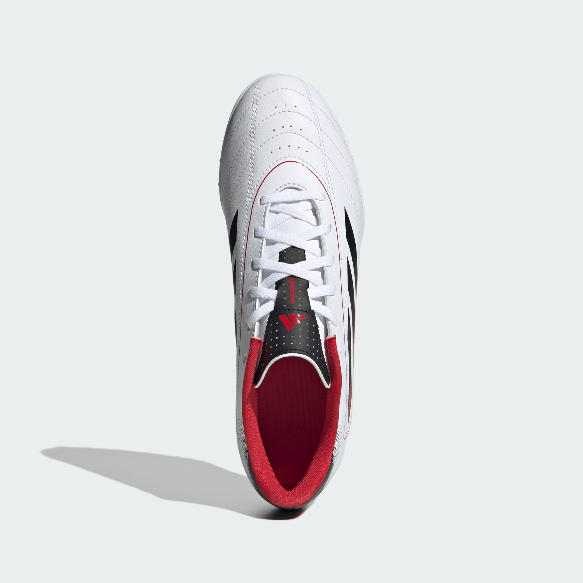 Ponte este calzado de fútbol adidas Goletto IX y prepárate para brillar. Su exterior sintético suave incorpora acolchado y perforaciones en los lugares adecuados para mantenerte cómodo en todo momento. La suela de caucho con taches te permite moverte con rapidez en canchas de césped artificial.