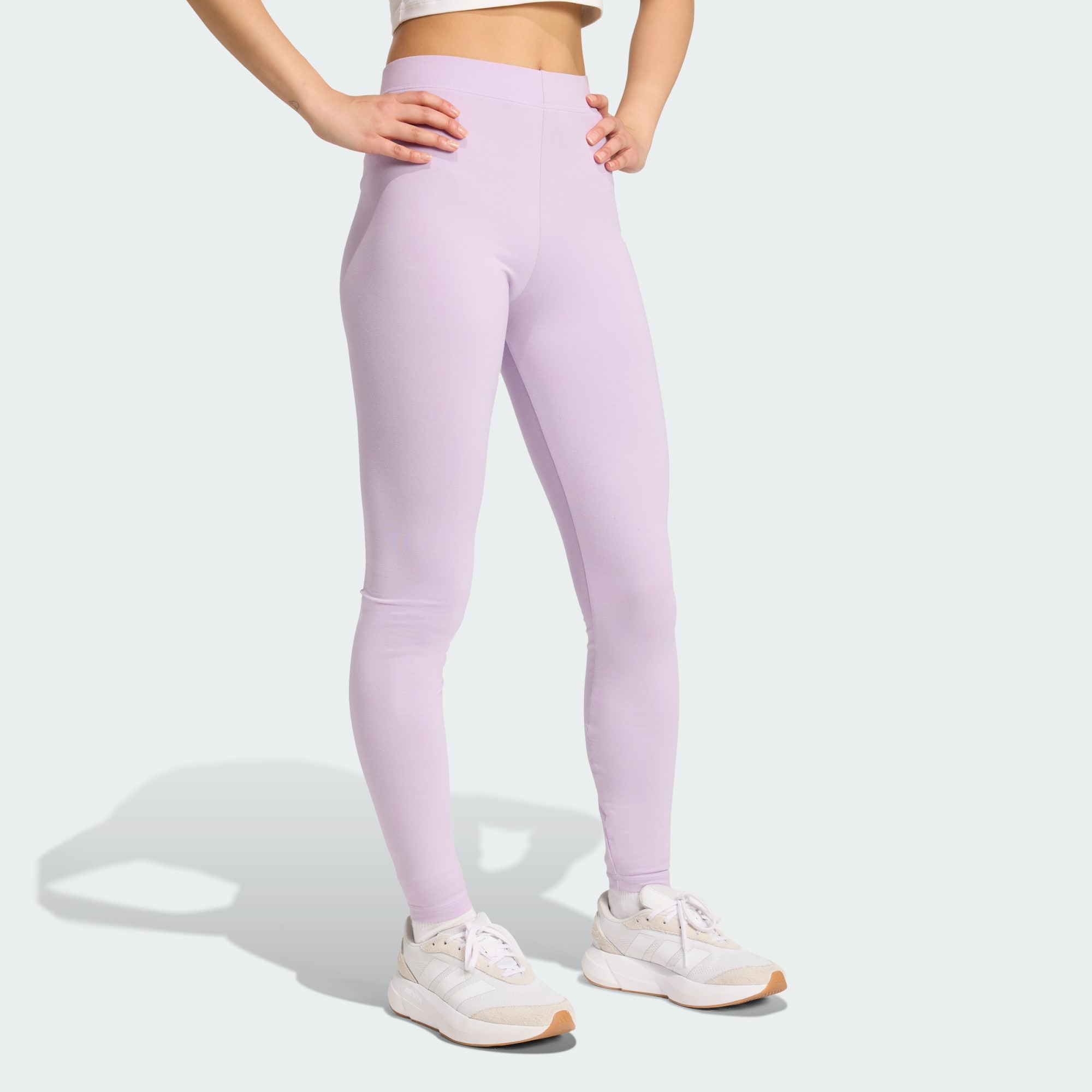 La sencillez puede ir en conjunto con la sofisticación. Estas calzas adidas son perfectas para las noches cómodas o los días ajetreados. El tejido de algodón ofrece la dosis perfecta de elasticidad para que se muevan contigo sin importar lo que te depare el día. La cintura de tiro alto te brinda una gran sujeción y favorece tu figura, y combina a la perfección con un polerón por encima de la cintura o una polera sin mangas extragrande.