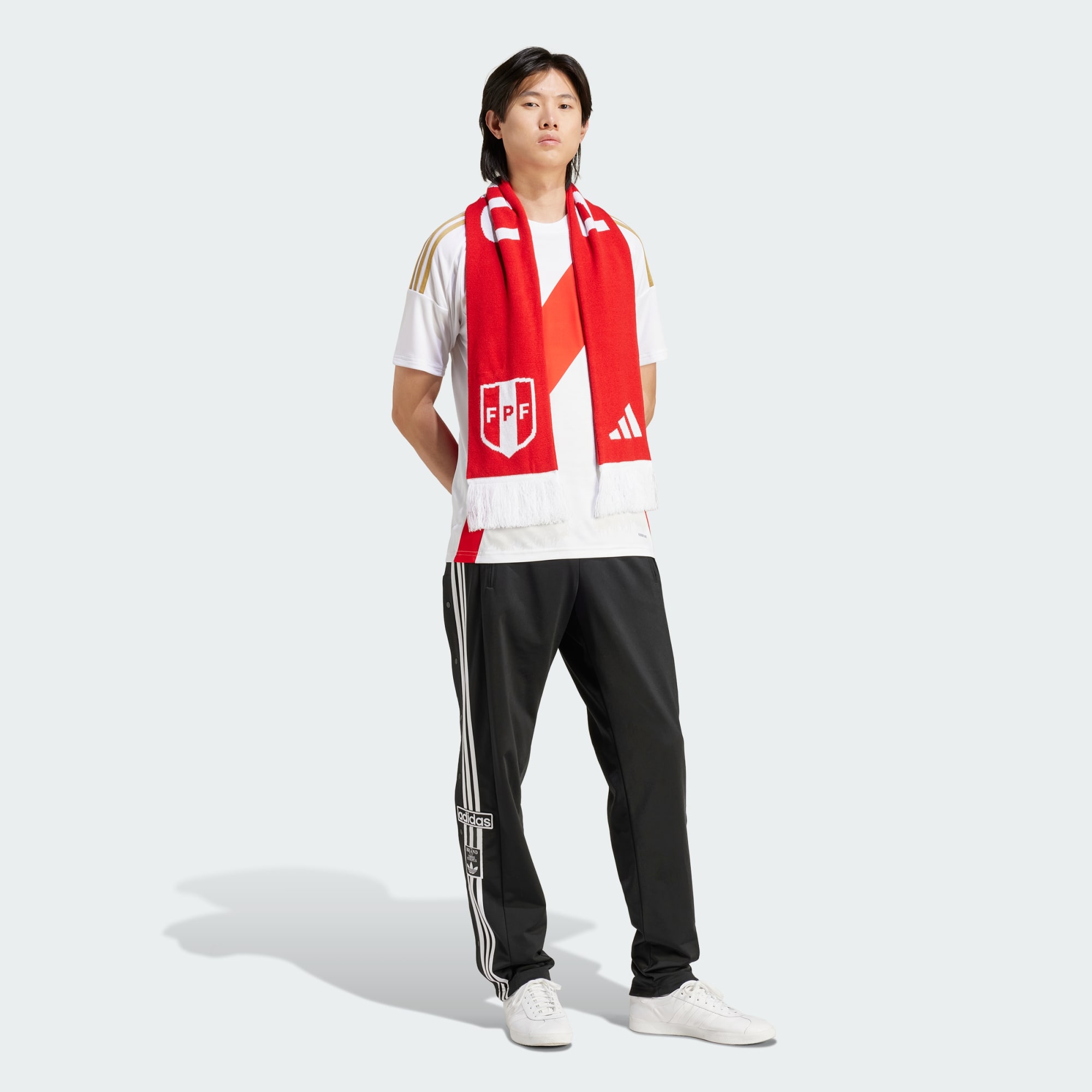 Un look futbolero clásico y un diseño cargado de tradición musical peruana. Detrás de la infaltable banda roja, el fondo blanco de esta camiseta local de Perú adidas cobra vida con un efecto de grano de madera tomado de un tradicional cajón peruano. Los paneles de malla y el tejido con tecnología de absorción AEROREADY mantienen a jugadores y aficionados concentrados en el juego. El escudo tejido irradia orgullo por el país. Este producto está hecho con materiales 100 % reciclados. Utilizando materiales reciclados disminuimos los residuos, nuestra dependencia de los recursos finitos y la huella que generan los productos que fabricamos.