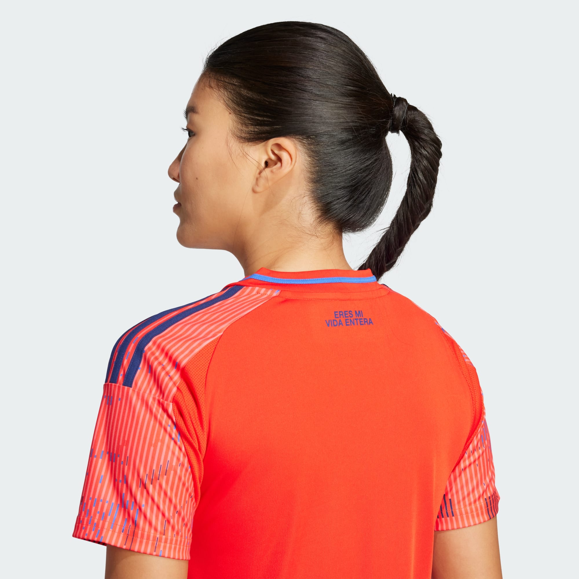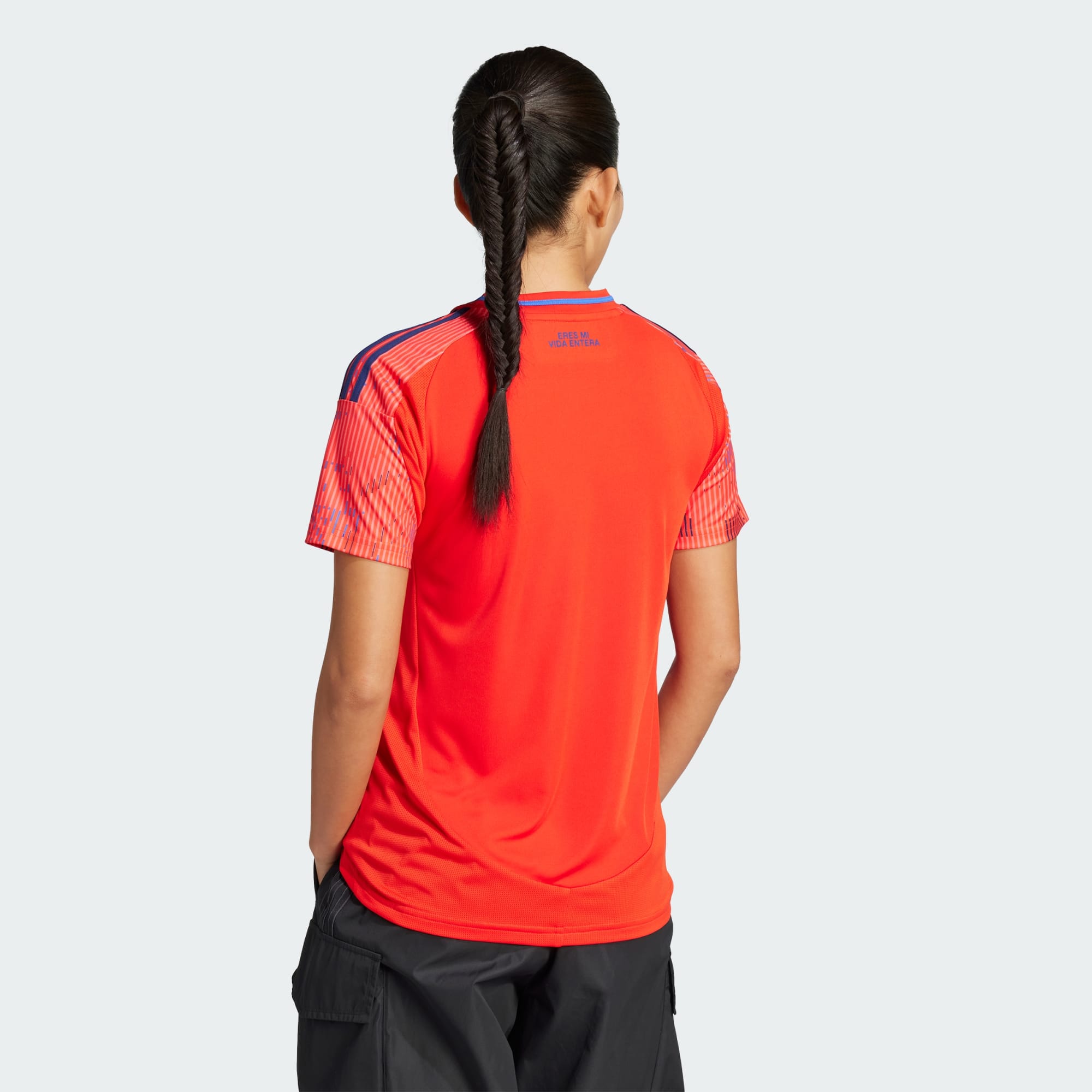 Con un característico rojo y detalles en diferentes tonos de azul, esta camiseta de visita refleja la pasión y el orgullo de los hinchas del Bulla. La frase 'Eres mi vida entera' honra el vínculo inquebrantable con el club. Su diseño moderno presenta un gráfico exclusivo, inspirado en el frontis del centro de entrenamiento, fusionado con elementos del metaverso para lograr una estética única que mezcla lo físico con lo digital. Este diseño simboliza el avance hacia el futuro mientras honra la historia del club, con un enfoque innovador y futurista. Con tecnología AEROREADY, asegura frescura y comodidad, permitiendo a los hinchas acompañar al equipo en cada partido fuera de casa, con estilo y rendimiento.