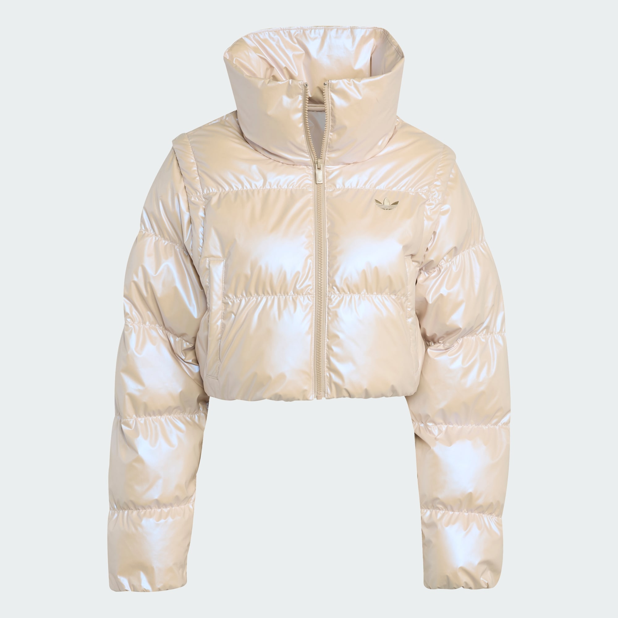 Una chaqueta de alto brillo y mangas con cierre.