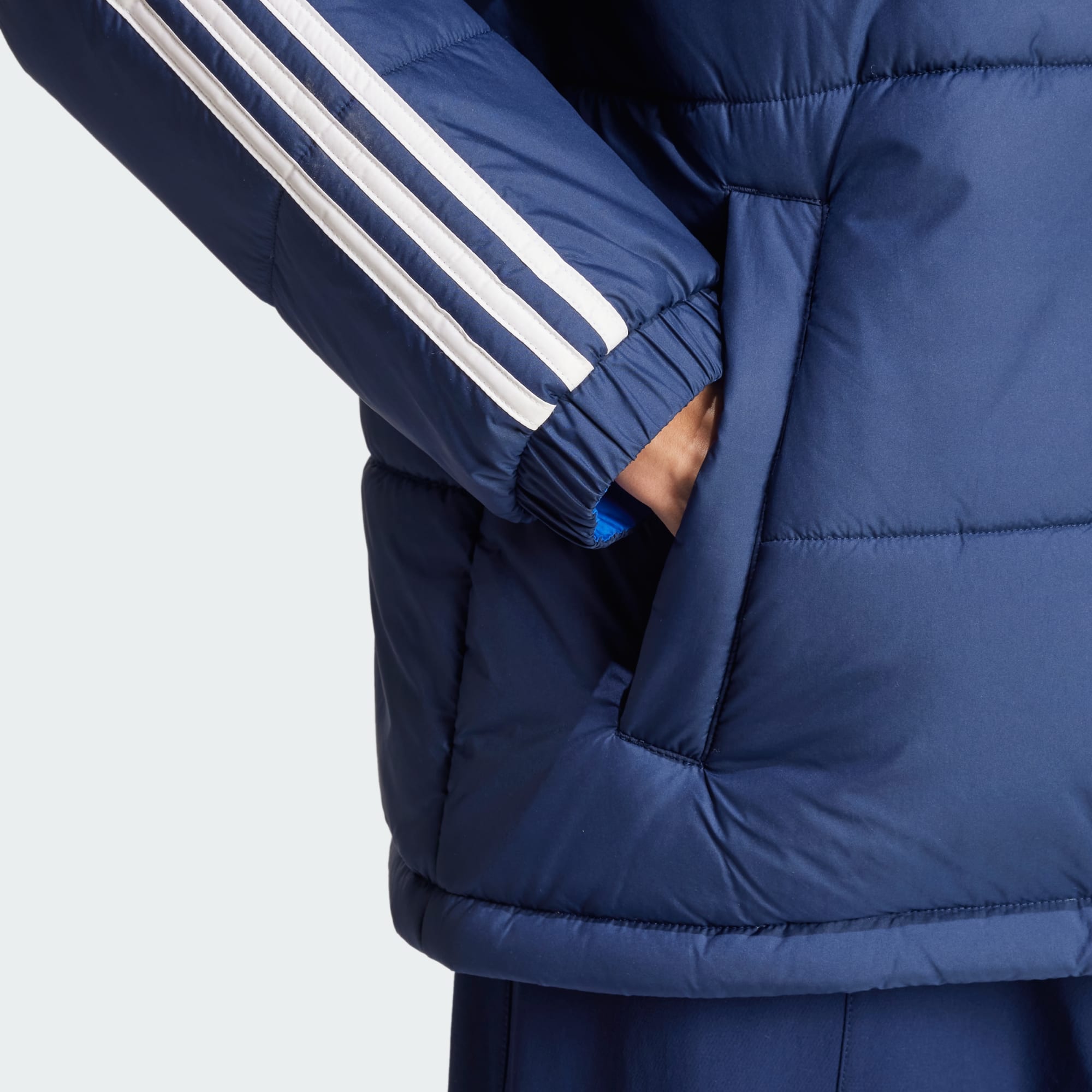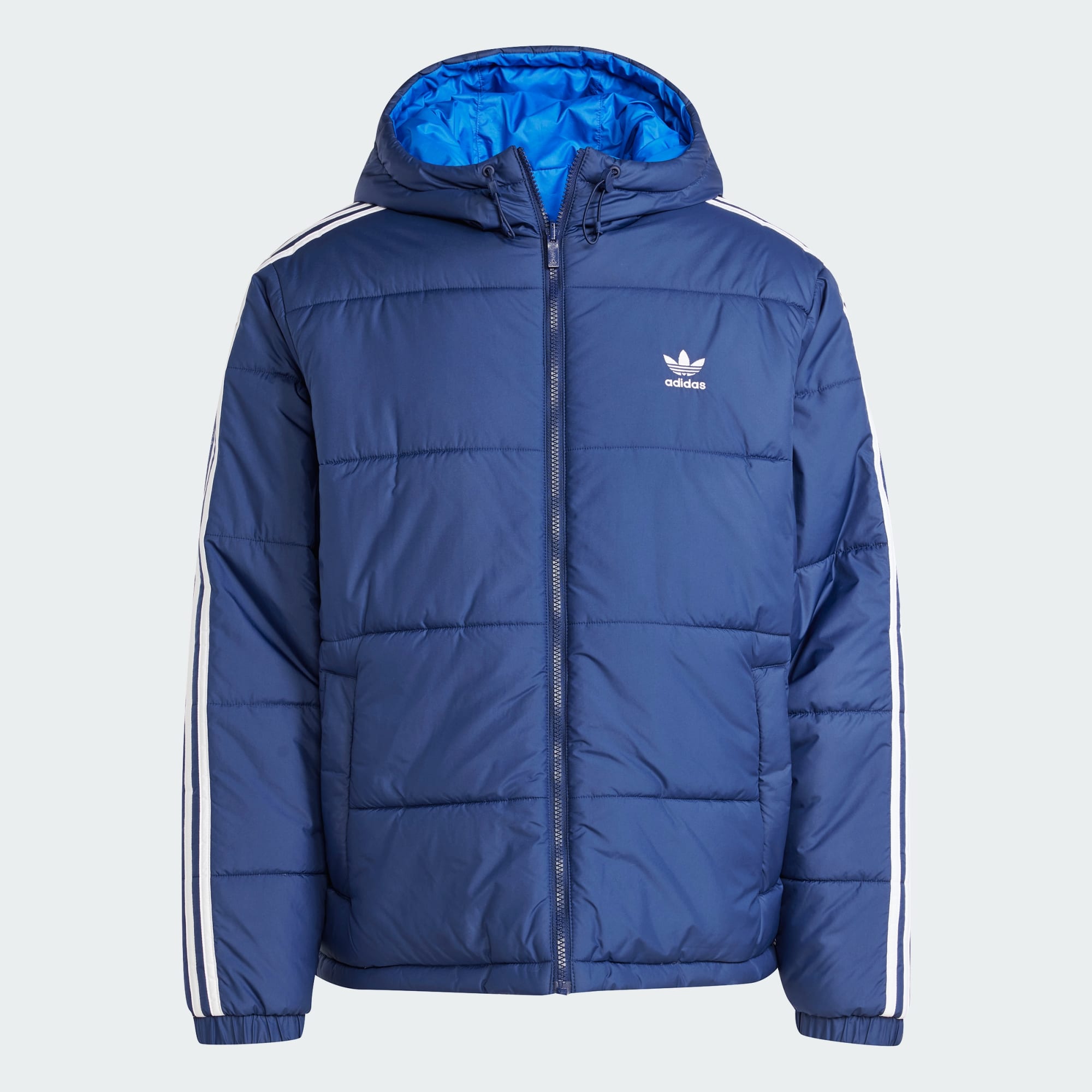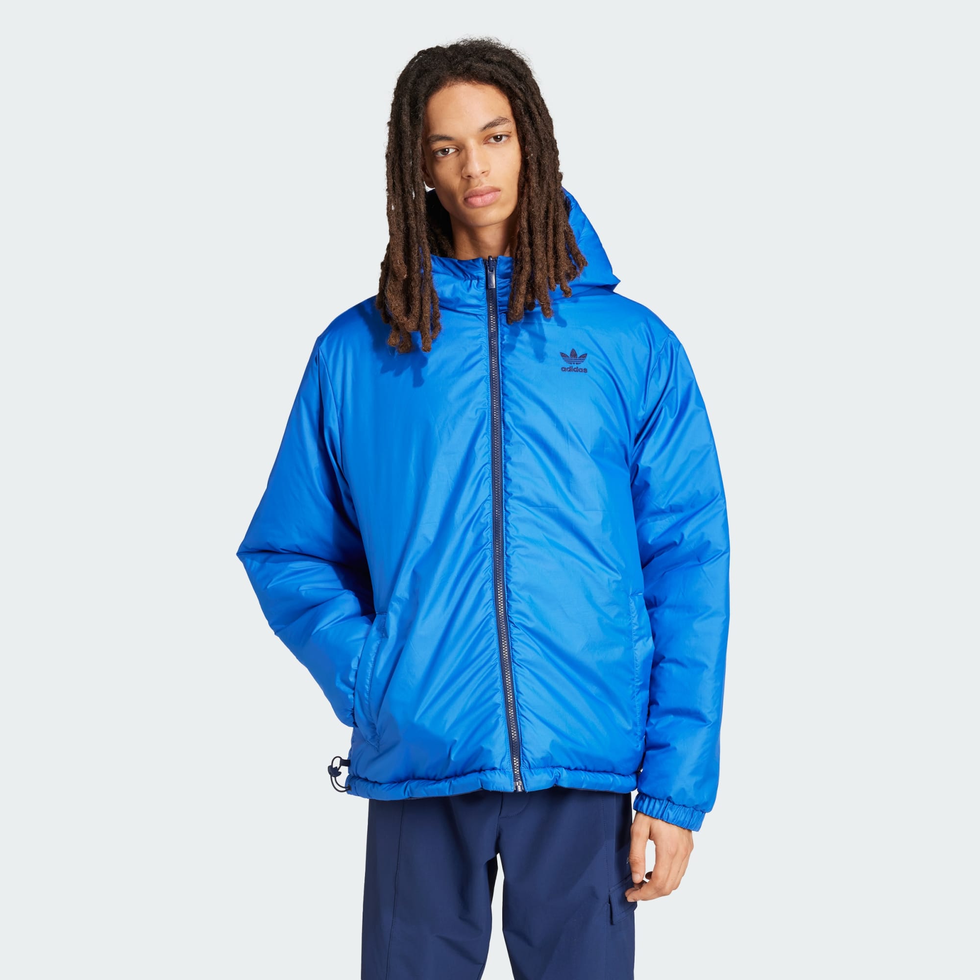 Clásica, icónica y atemporal. Audaz, atrevida y valiente. No estamos hablando de dos chaquetas, estamos hablando de esta chaqueta doble vista adidas que te brinda dos looks, y dos energías, en uno. Acolchada en una cara y lisa en la otra, esta chaqueta ofrece abrigo y protección del frío. Tú decides que cara lucirás primero. Al menos un 70 % de este producto está hecho de una mezcla de materiales reciclados y renovables.