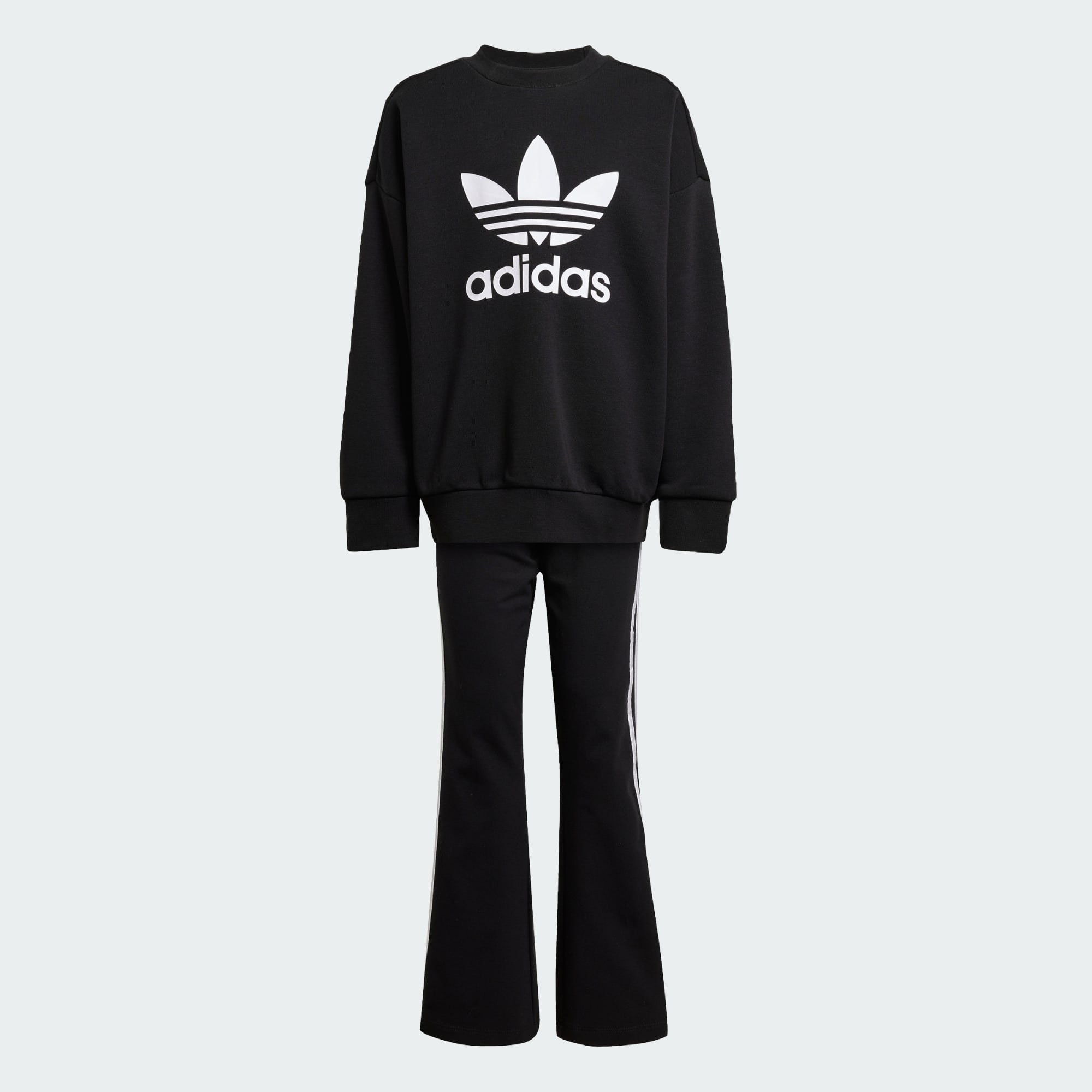 El audaz estilo de adidas Originals para niños a los que les encanta lucir el logo del Trifolio. Este conjunto de dos piezas para niños incluye un top de cuello redondo holgado y unas calzas ajustadas que se ponen fácilmente y favorecen el movimiento. Las calzas ajustadas a juego se acampanan alrededor de los tobillos y tienen una banda elástica en la cintura para un ajuste perfecto y elástico. Ambas piezas están confeccionadas con suave French terry. Llévalo como conjunto o mezcla y combina las piezas con otras prendas.