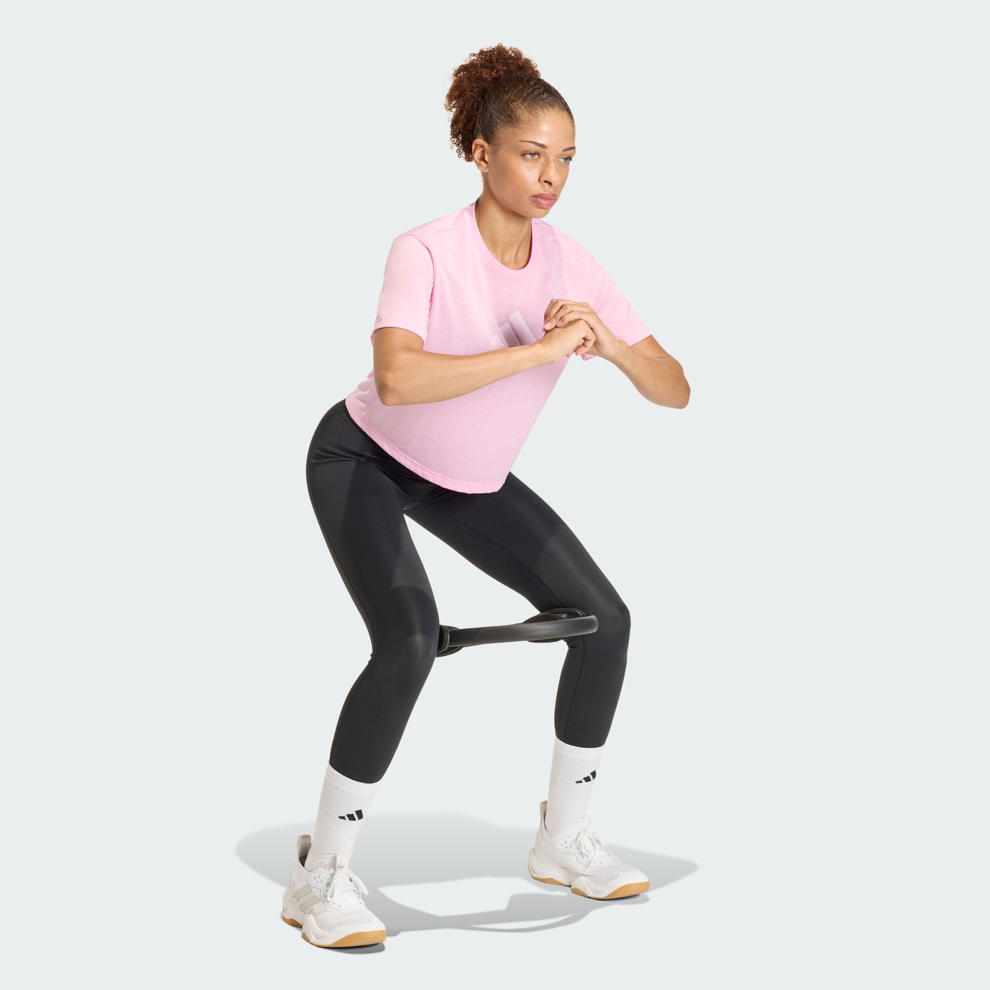 Una polera de entrenamiento con tecnología AEROREADY hecha parcialmente con materiales reciclados.