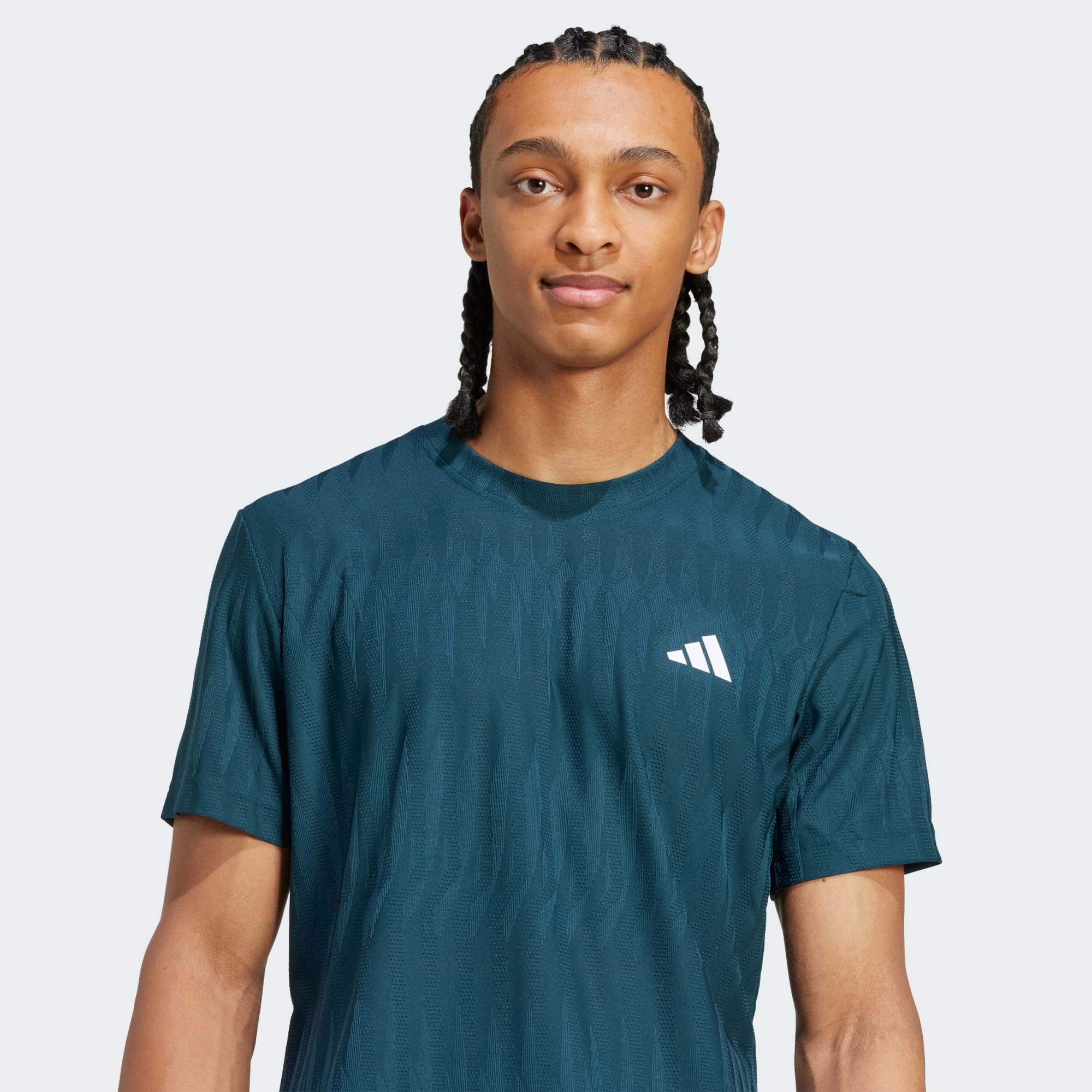 Una polera de tenis de ajuste ceñido con CLIMACOOL+ para un rendimiento avanzado.