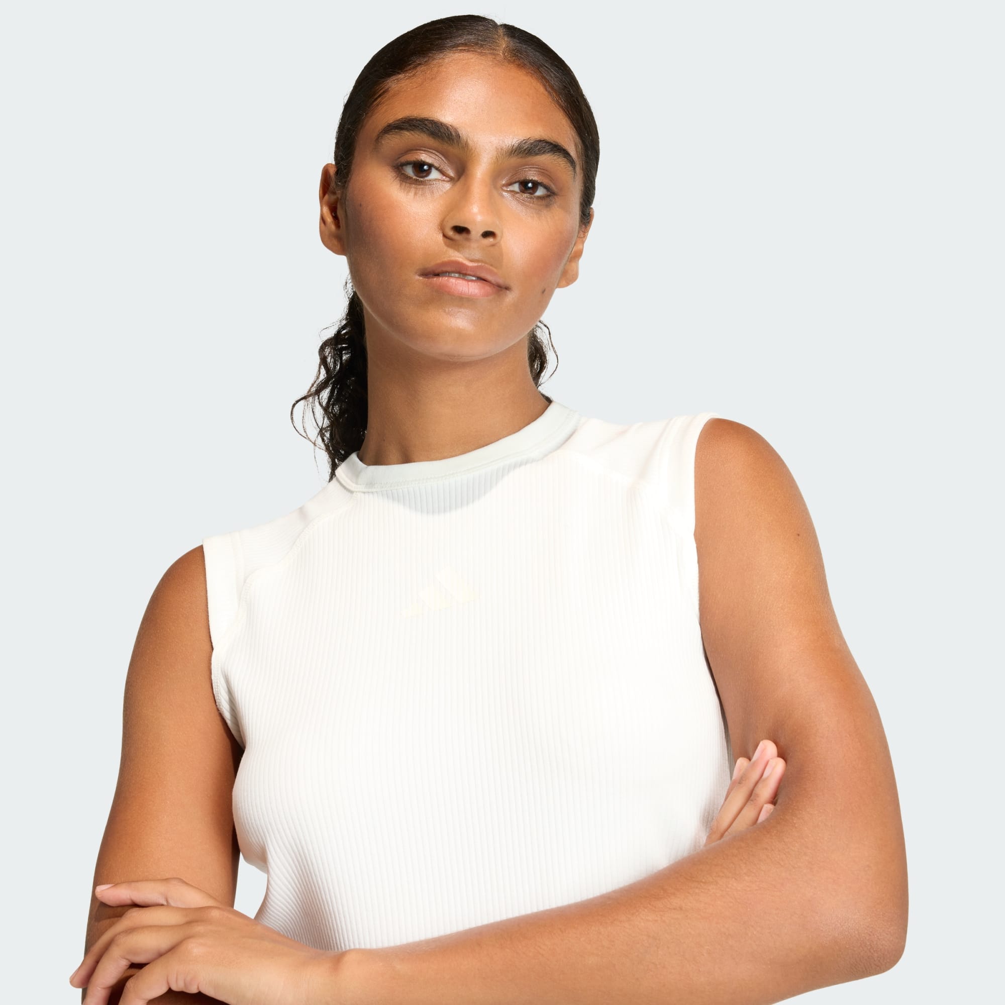 La polera sin mangas ALL SZN Rib está diseñada para quienes buscan comodidad y estilo en su día a día. Tanto para una salida casual como para quedarse en casa, esta polera sin mangas será tu preferida para lucir un estilo relajado. Con un ajuste ceñido, esta polera se adapta a tu cuerpo, proporcionando una silueta favorecedora que se mueve contigo. Confeccionada con un tejido de doble punto acanalado, ofrece un tacto suave y elasticidad, lo que te ayuda a sentirte cómoda durante todo el día. La colección ALL SZN te ofrece prendas básicas elevadas que te ayudan a sentirte segura de tu cuerpo y tu mente. Déjate seducir por la colección Future Lounge y disfruta de prendas que se adaptan a tu estilo de vida, temporada tras temporada.