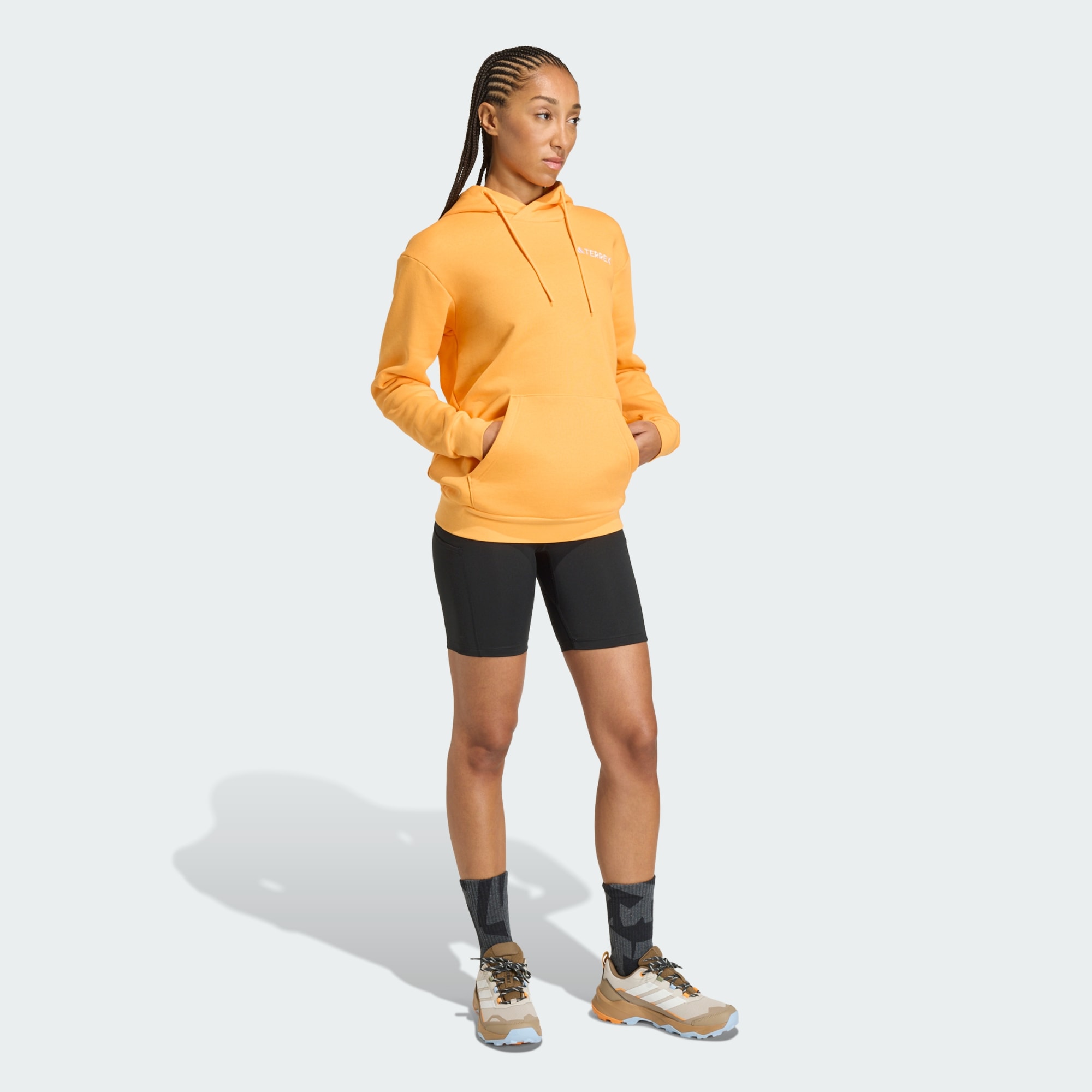 Este polerón con capucha Terrex mantendrá tu cuerpo abrigado luego de una aventura épica o mientras te relajas en el sofá. El tejido de algodón perchado de una mezcla de algodón suave y los puños acanalados mantienen el frío en el exterior. Sube la capucha y sigue adelante. Al elegir contenido reciclado, podemos reutilizar materiales que ya han sido creados, lo que ayuda a reducir los residuos. La elección de materiales renovables nos ayudará a eliminar nuestra dependencia de recursos finitos. Nuestros productos hechos con una mezcla de materiales reciclados y renovables incorporan al menos un 70 % de estos materiales.