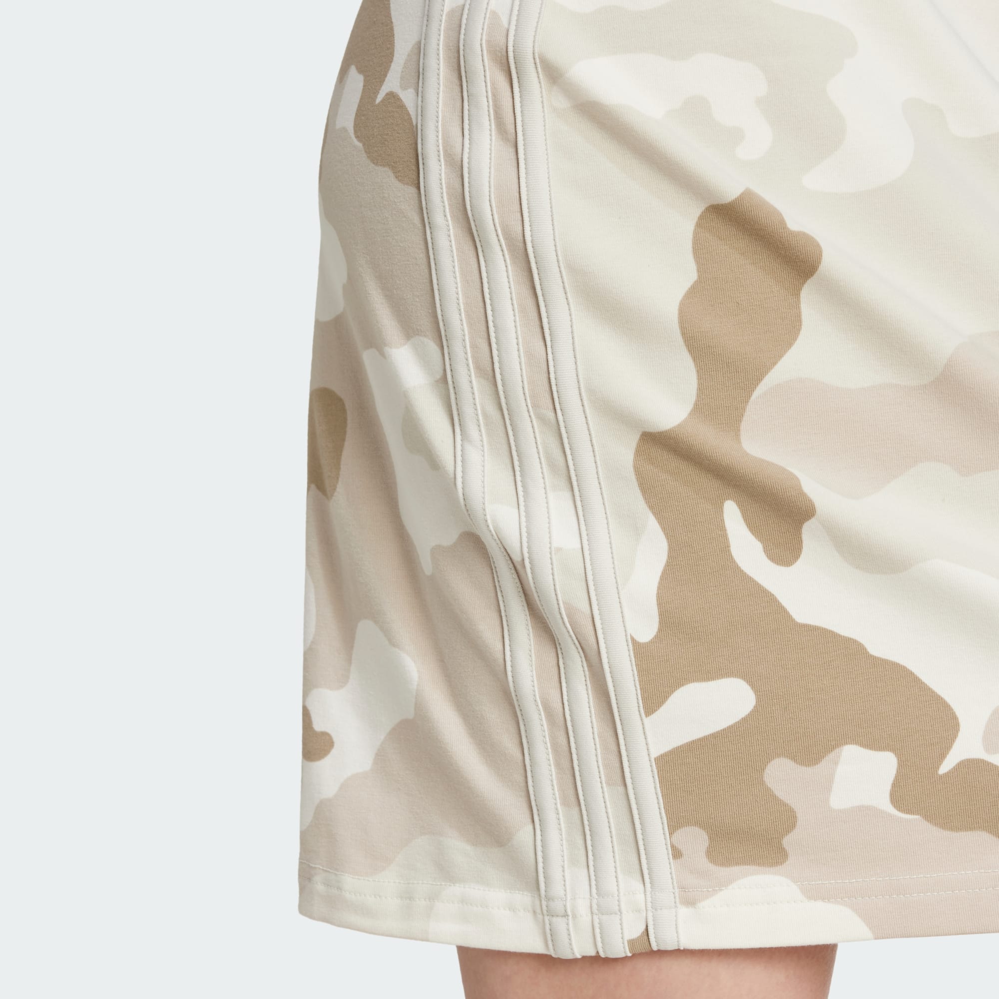 Un vestido con estampado de camuflaje y un corte deportivo por encima de la rodilla