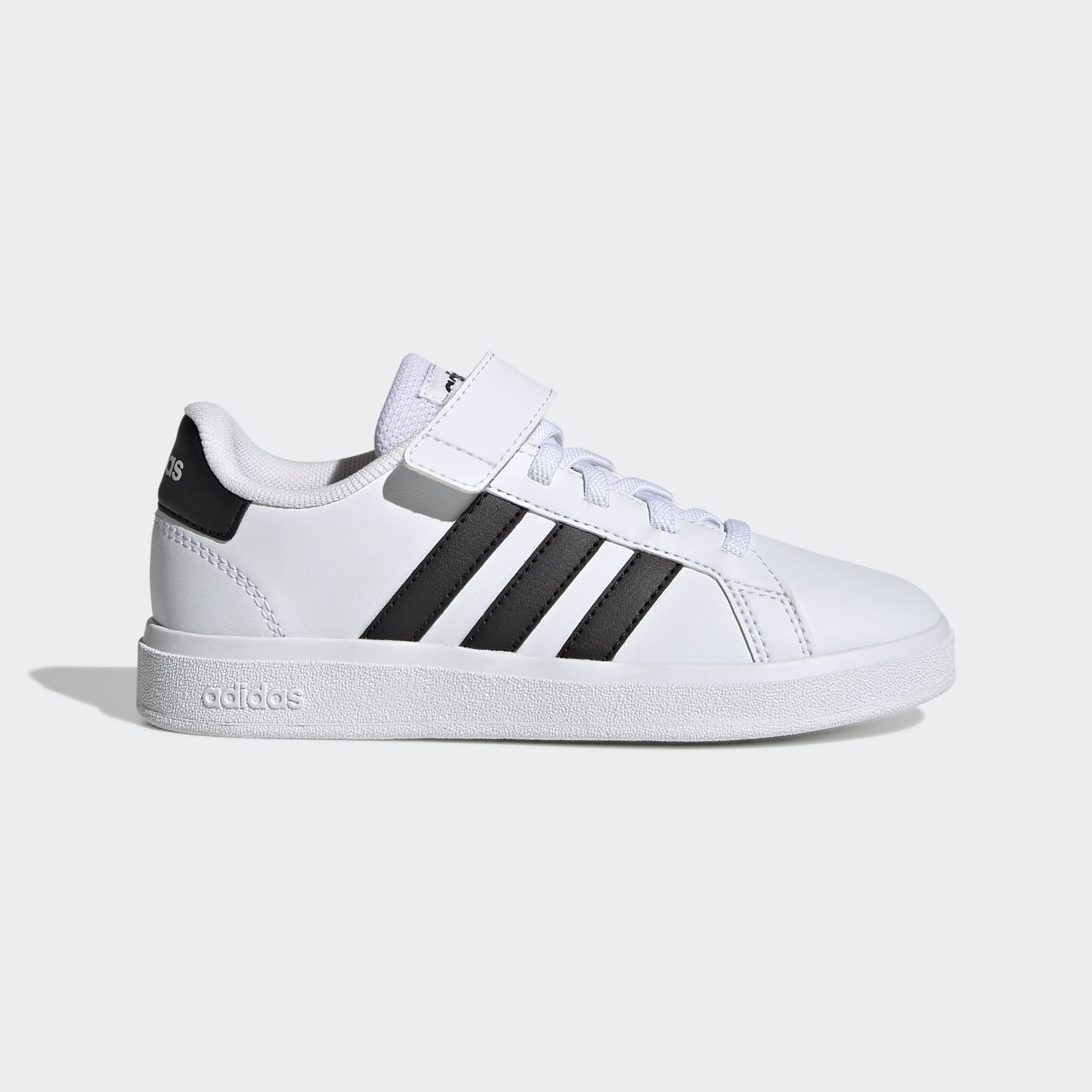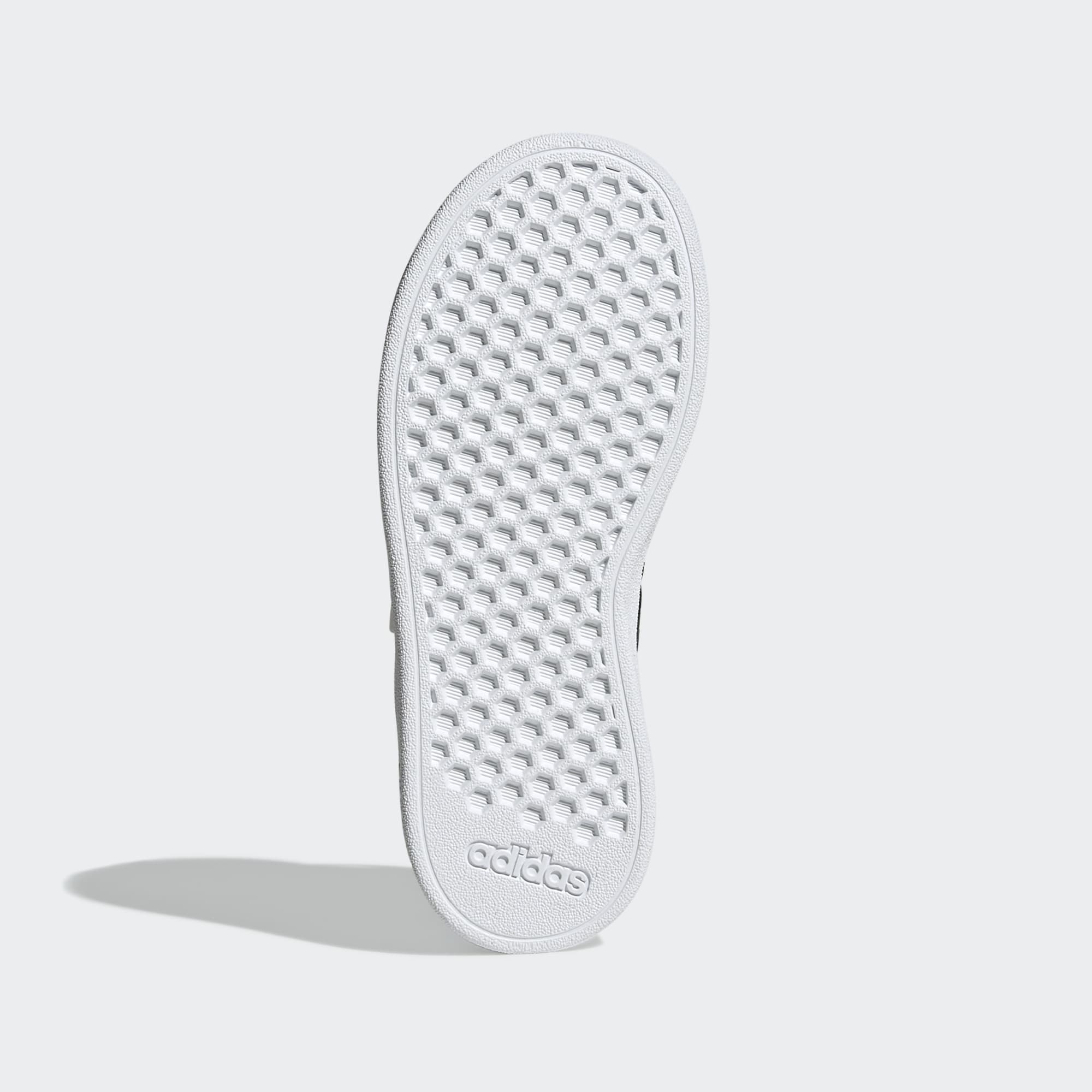 Nunca es demasiado temprano para empezar la colección de calzado de tu peque. Empieza con toda con estas zapatillas adidas Grand Court para niños. Incorporan una suela tipo cupsole de caucho resistente y flexible que soporta cada paso y salto. Confeccionadas con cordones elásticos que se estiran cuando los niños las ponen y una tira regulable de cierre por contacto que pueden ajustar por sí mismos, estas zapatillas clásicas no se quedarán en la caja por mucho tiempo. Hecho con una serie de materiales reciclados, este exterior incorpora al menos un 50 % de contenido reciclado. Este producto representa solo una de nuestras soluciones para acabar con los residuos plásticos.