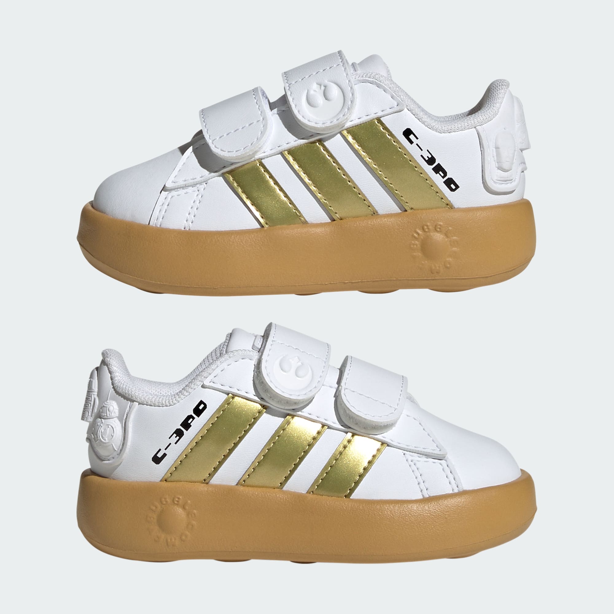 Los aficionados más pequeños de Star Wars pueden fingir ser su droid favorito con estas zapatillas adidas para bebé. Ya sea que vayan a una galaxia muy, muy lejana o simplemente al patio de recreo, el exterior sintético suave mantiene cómodos los pequeños pies durante todo el día. Las tiras ajustables de cierre por contacto permiten ponerlas y quitarlas con facilidad. Los estampados de Star Wars aumentan la diversión. Al elegir contenido reciclado, podemos reutilizar materiales que ya han sido creados, lo que ayuda a reducir los residuos. La elección de materiales renovables nos ayudará a eliminar nuestra dependencia de recursos finitos. Nuestros productos hechos con una mezcla de materiales reciclados y renovables contienen al menos un 20 % de estos materiales.