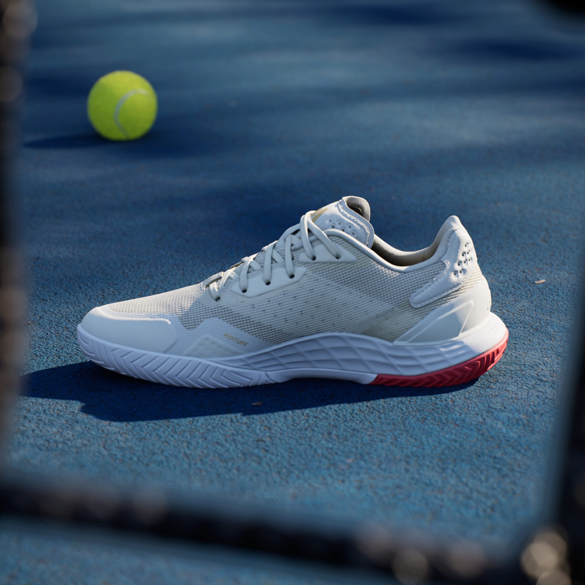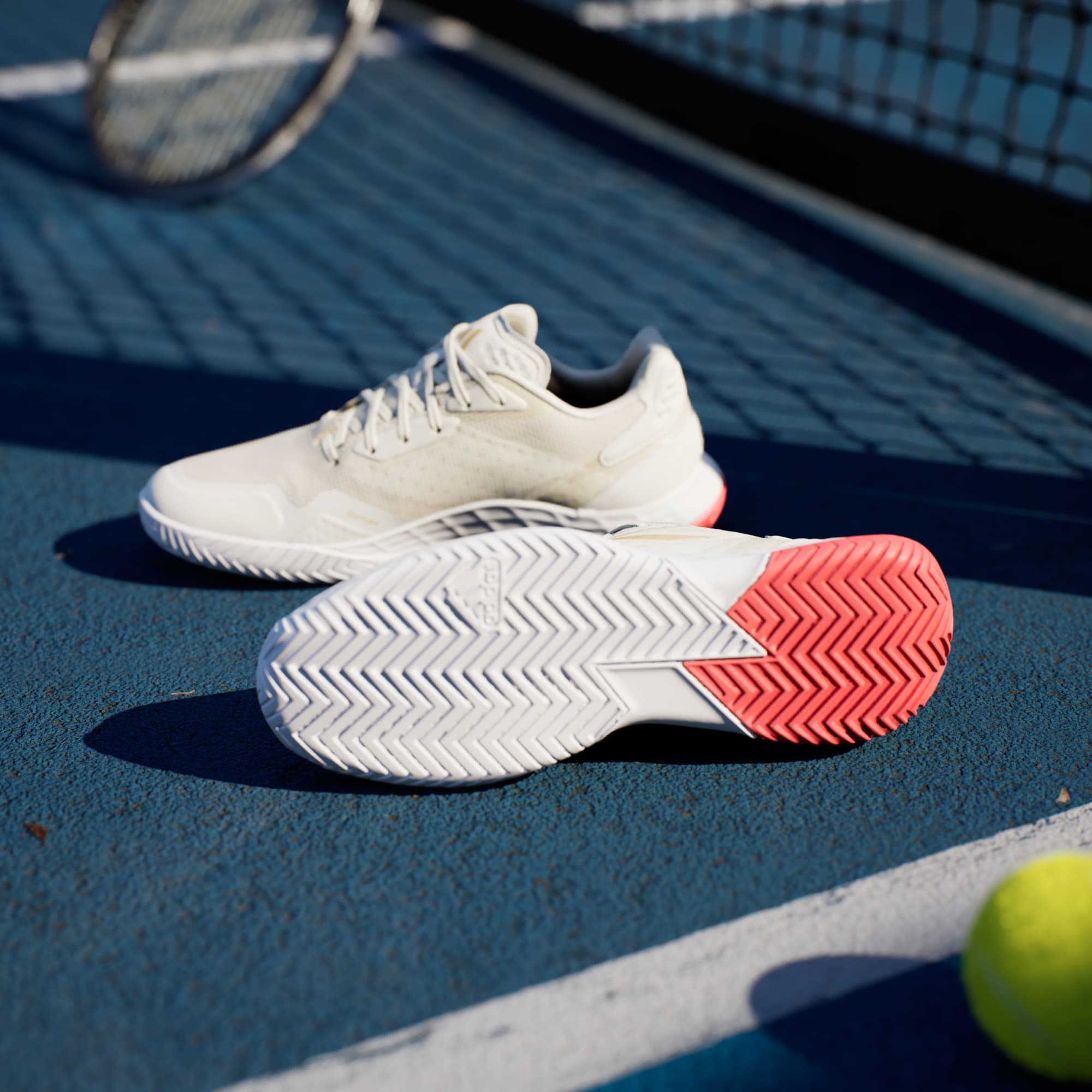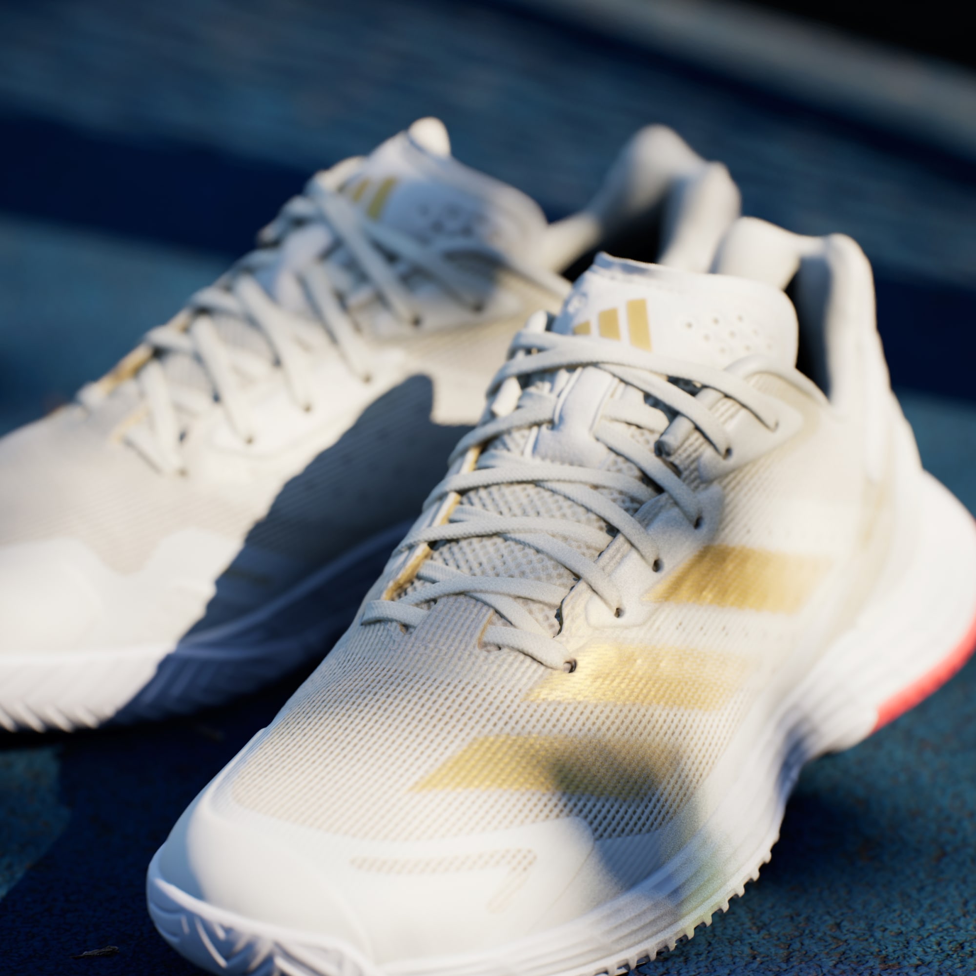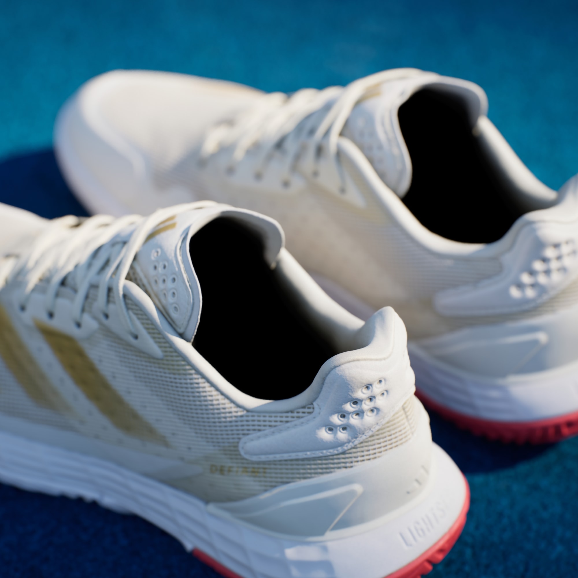 Piensa rápido, muévete rápido. Estas zapatillas adidas para jugar tenis te permiten moverte con total libertad en la cancha. La mediasuela Lightstrike ofrece amortiguación receptiva, una velocidad superior y una sensación de contacto con el suelo. El exterior de malla, que trabaja en armonía con una plantilla moldeada y TPU en el talón, mantiene el pie seguro y ventilado.