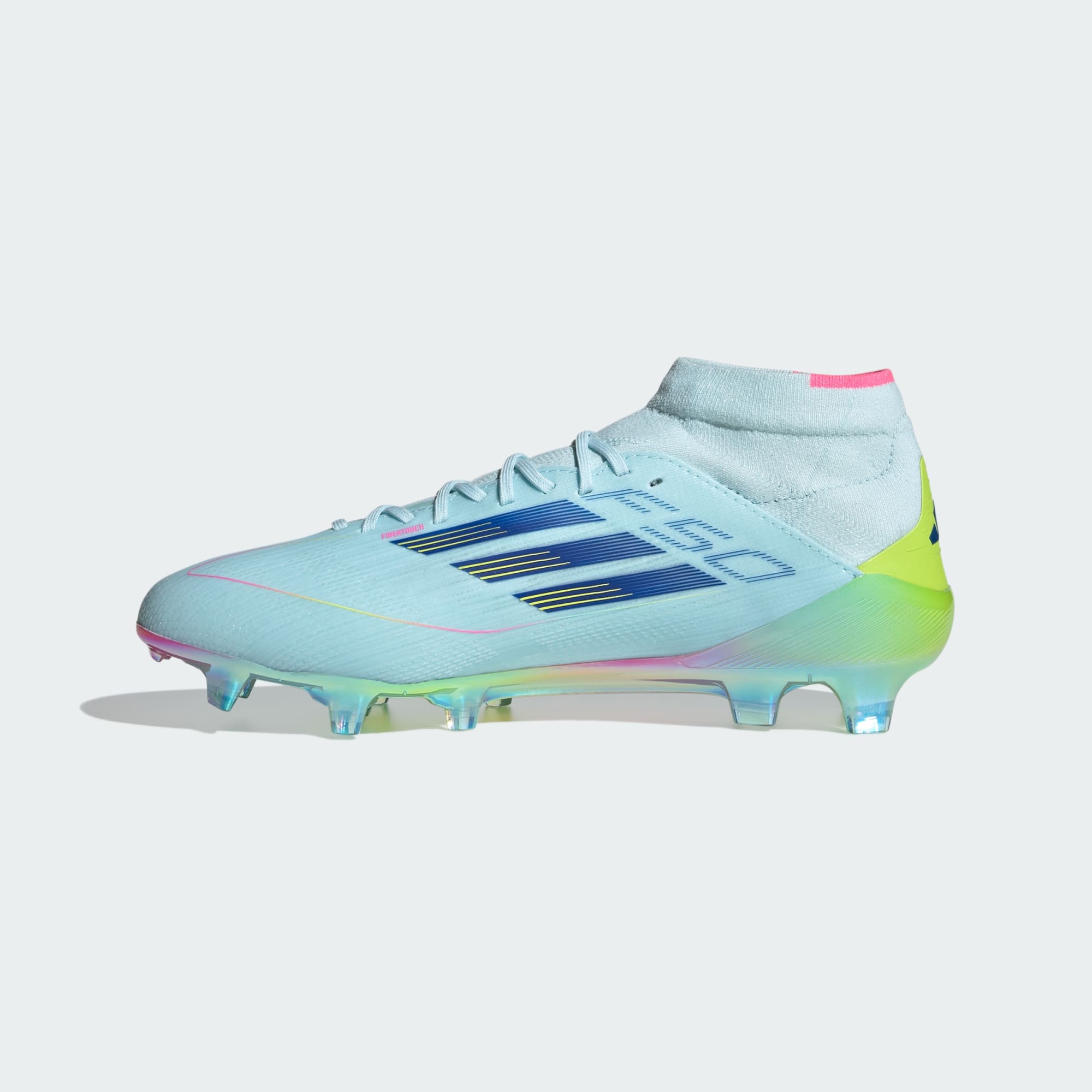 Inspirados en un pionero de las 3 Tiras. El diseño de estos zapatos de fútbol para terreno firme F50 Elite se inspira en los estampados coloridos de un icónico balón de fútbol: el primer balón de adidas diseñado para el torneo más prestigioso del fútbol femenino. Parte de una colección limitada, cuentan con un exterior delgado Fibertouch con un corte medio de alto soporte y textura Sprintweb 3D para un control óptimo a altas velocidades. Este producto contiene al menos un 20% de material reciclado. Utilizando materiales reciclados reducimos los residuos, nuestra dependencia de los recursos finitos y la huella que generan los productos que fabricamos.