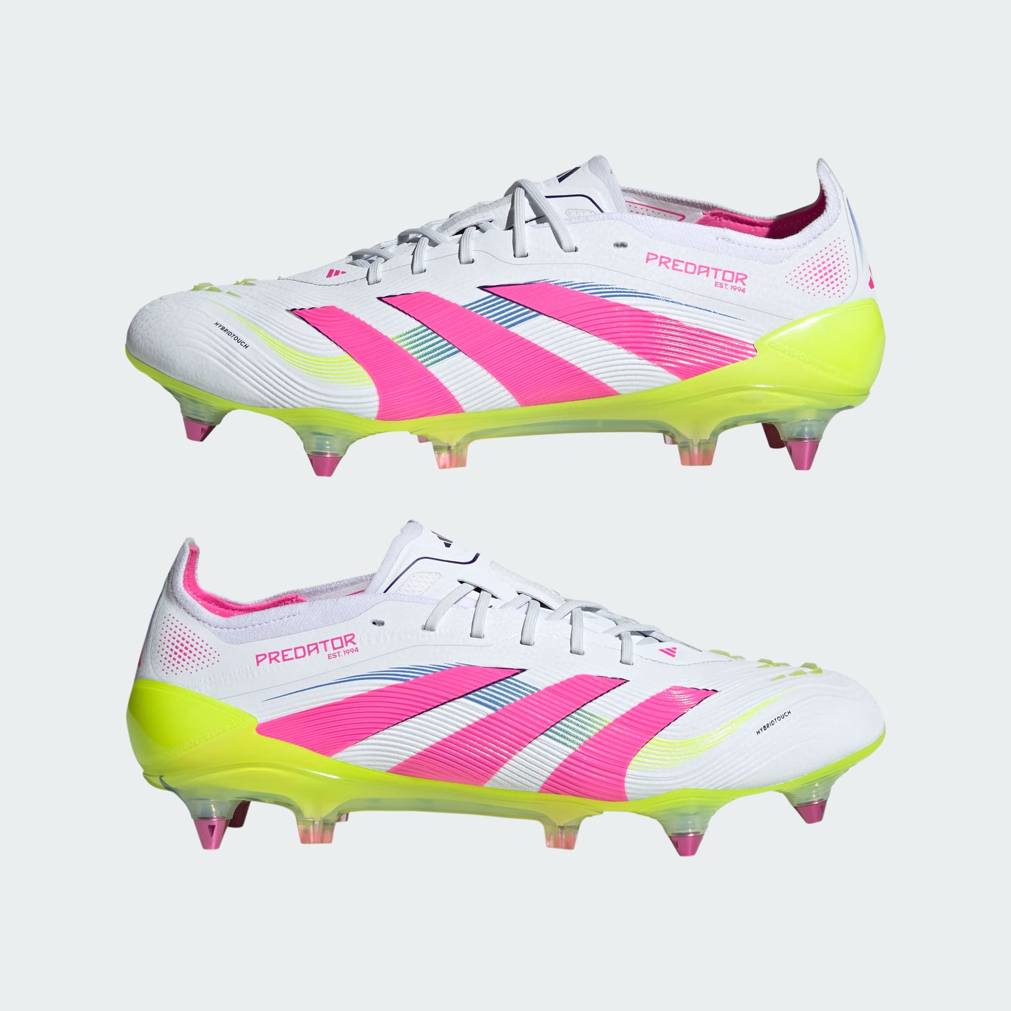 Comienza cada partido sabiendo que anotarás con estos zapatos de fútbol adidas Predator Elite creados para marcar goles. Presentan un exterior HybridTouch flexible con inserciones de caucho Strikeskin estratégicamente ubicadas en el antepié que ofrecen un mejor contacto con la pelota. La suela Controlframe 2.0 para terreno húmedo y el panel de tejido adidas PRIMEKNIT alrededor del tobillo te proporcionan la estabilidad que necesitas para concentrarte en tu puntería.